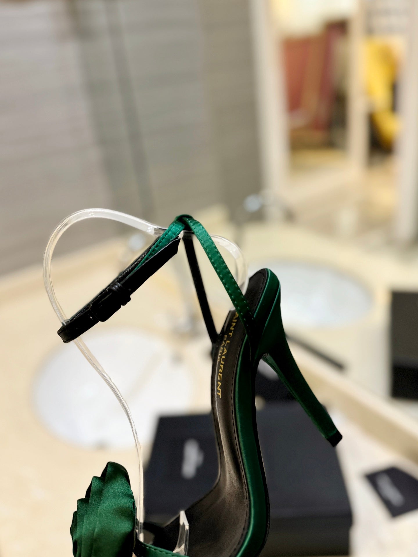 SL IVY FLORAL HEEL SANDALS DARK GREEN SATIN