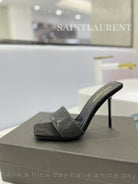 SL LUCKY BLACK CRYSTAL HIGH HEELS BLACK CALFSKIN
