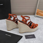 SL TRIBUTE WEDGE SANDALS BRICK POLISHED CALFSKIN