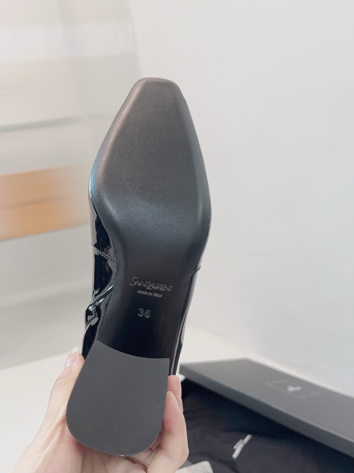 YSL 25 High Heeled Long Boot Black Patent Leather 522261