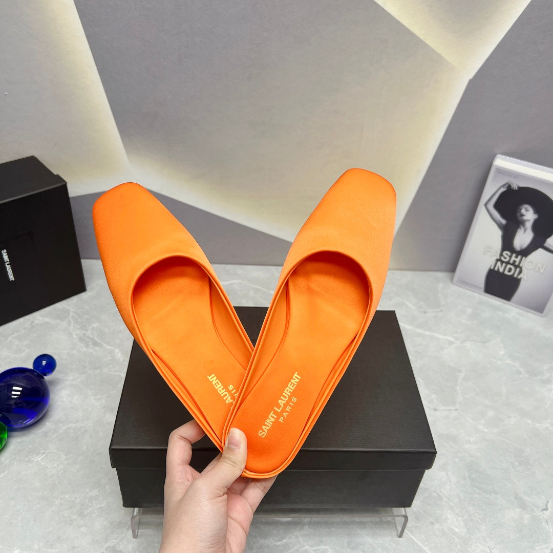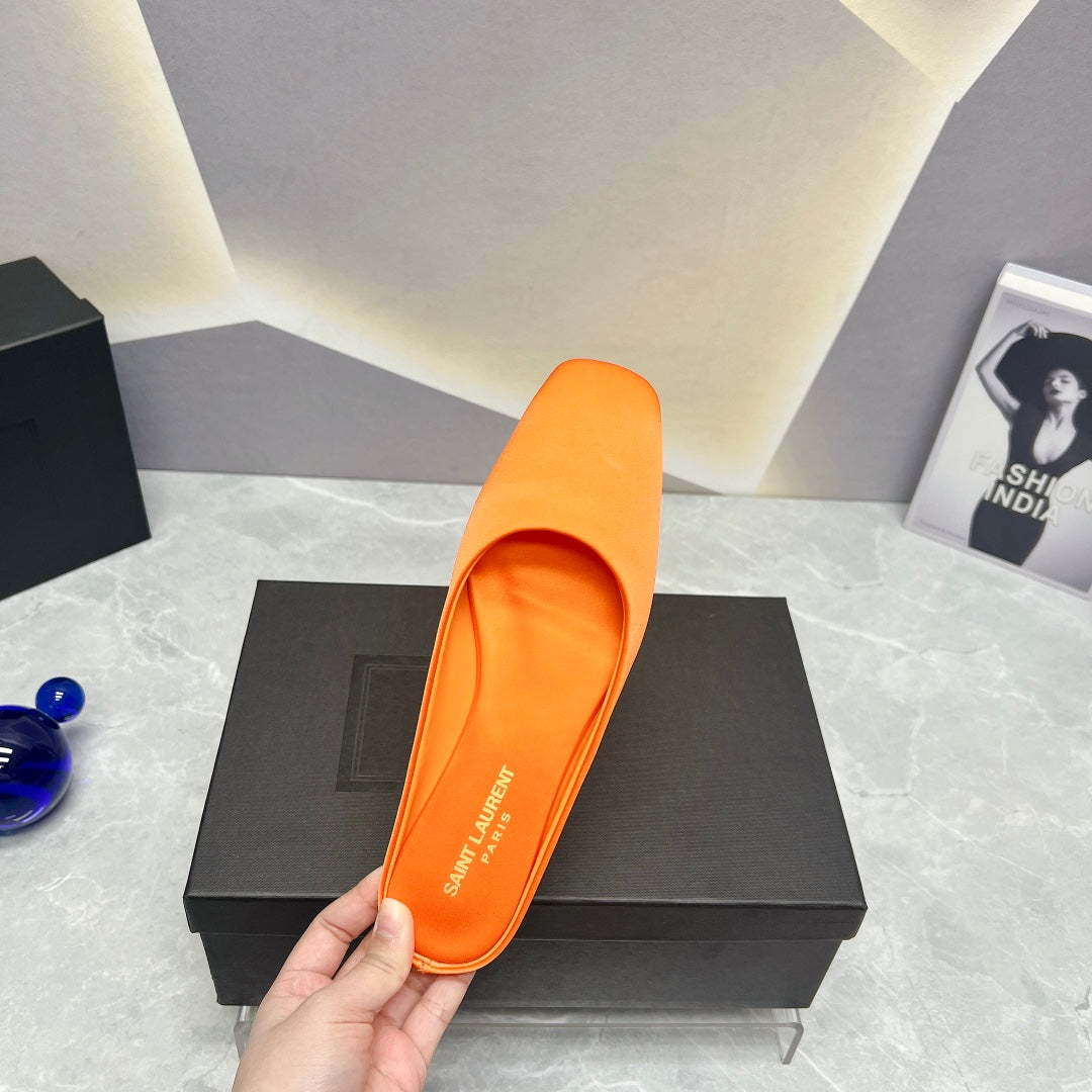 SL SQUARE TOE FLAT MULES LEMON SATIN