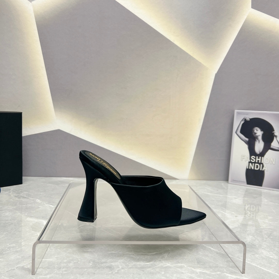 SL SQUARE TOE FLAT MULES BLACK SATIN