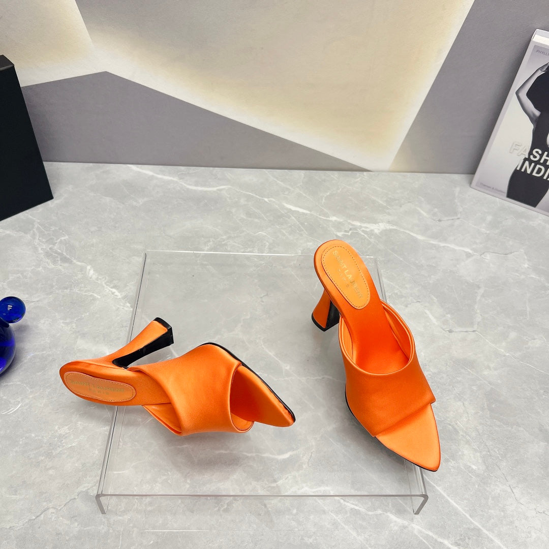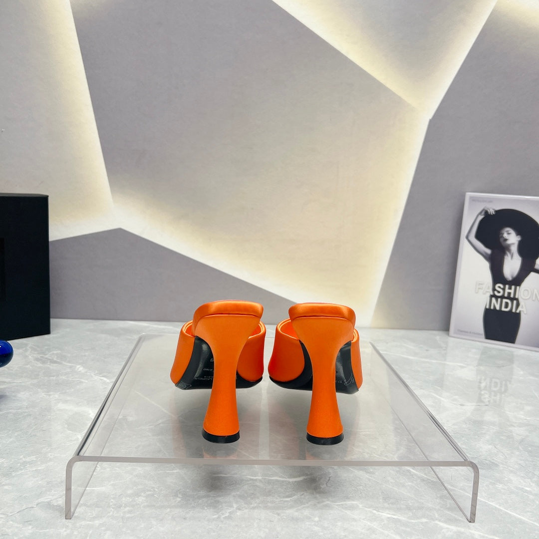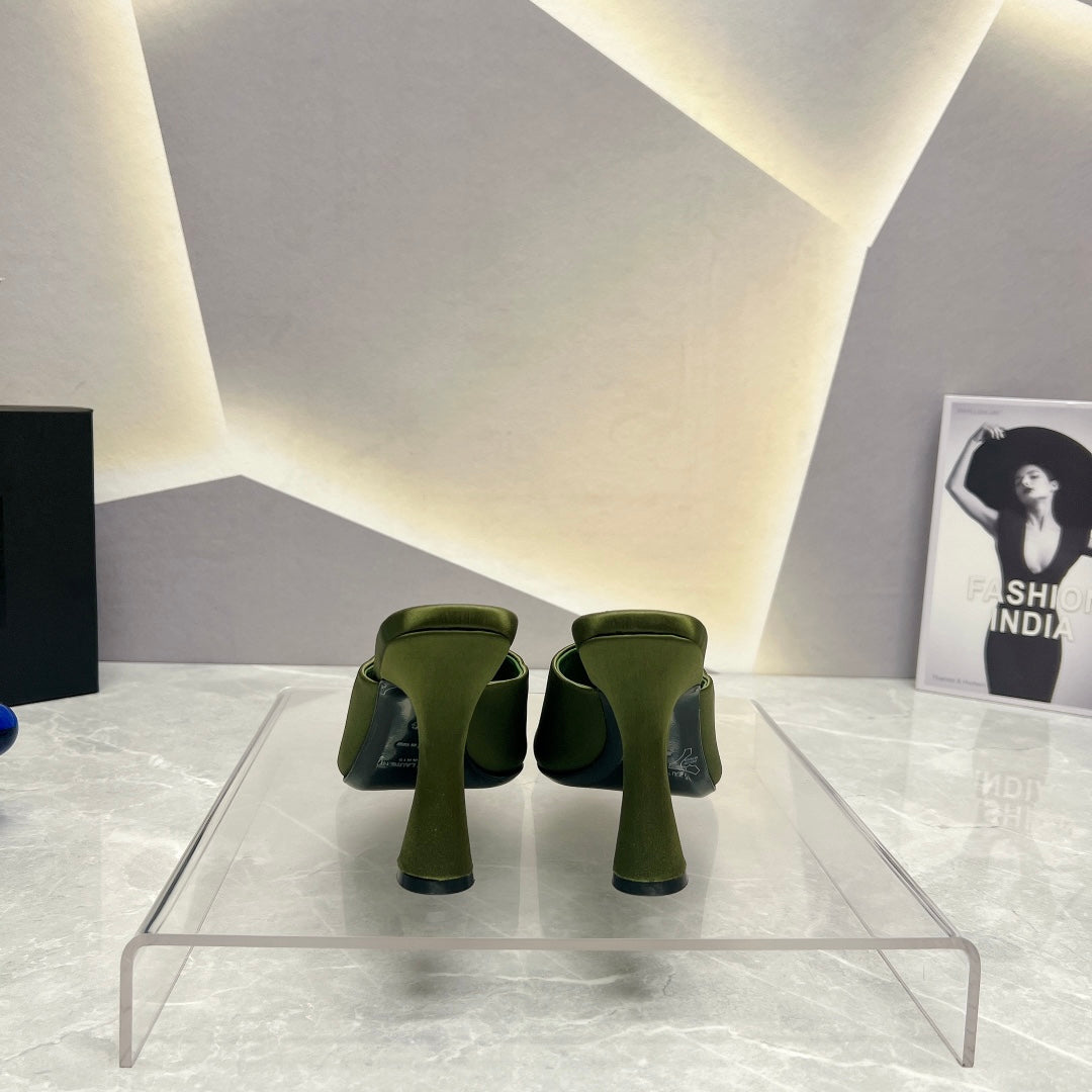 SL SQUARE TOE FLAT MULES MOSS SATIN
