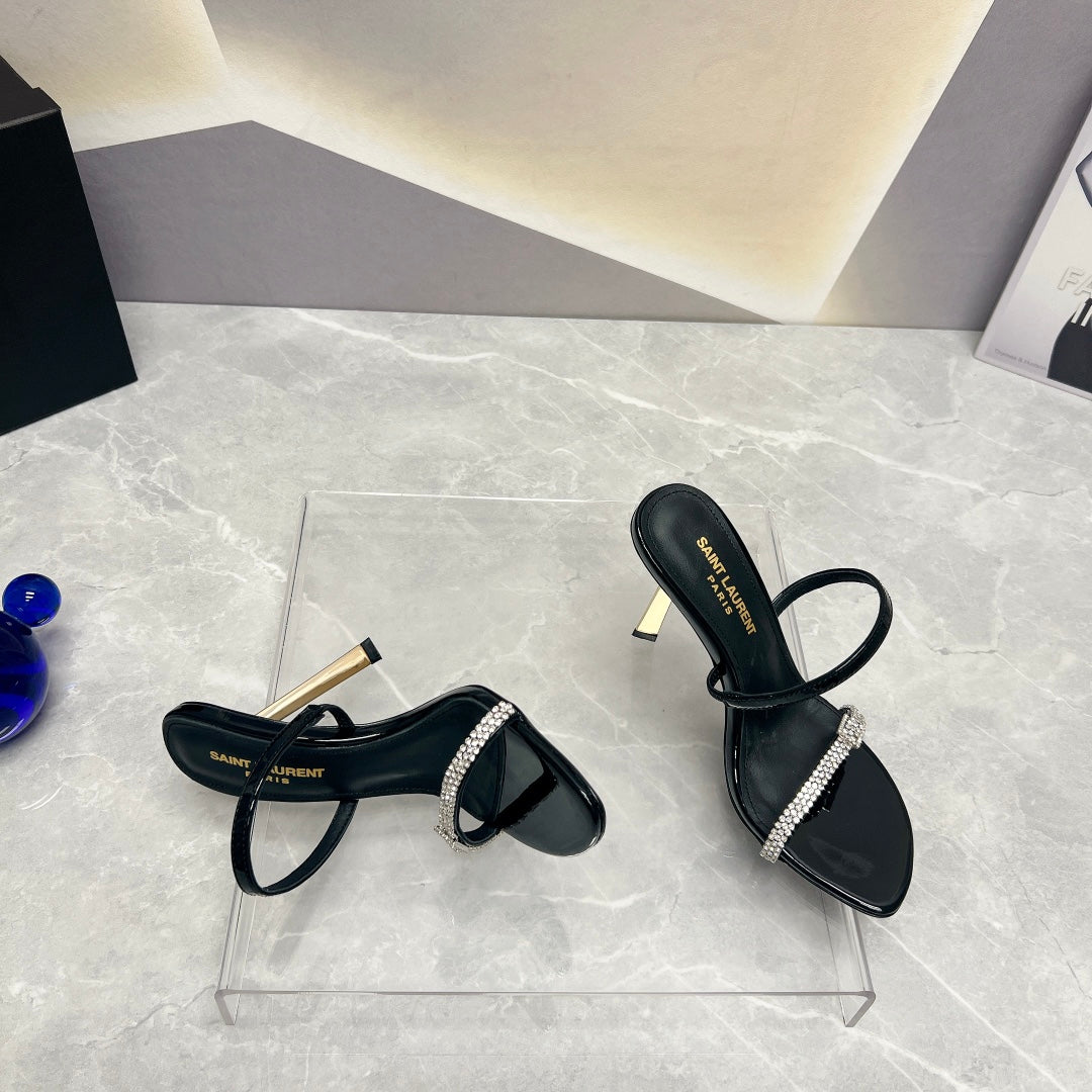 SL AYERS CRYSTAL SANDAL BLACK SATIN
