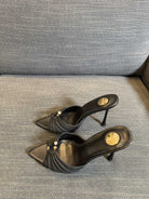 LOLA HIGH MULES IN BLACK SMOOTH LAMBSKIN AND DRAPED JERSEY