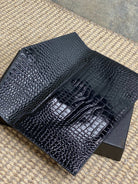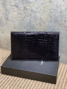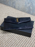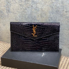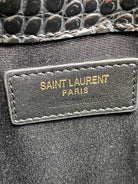 YSL 22s Uptown Pouch Clutch Bag Black Croc Embossed Leather GHW