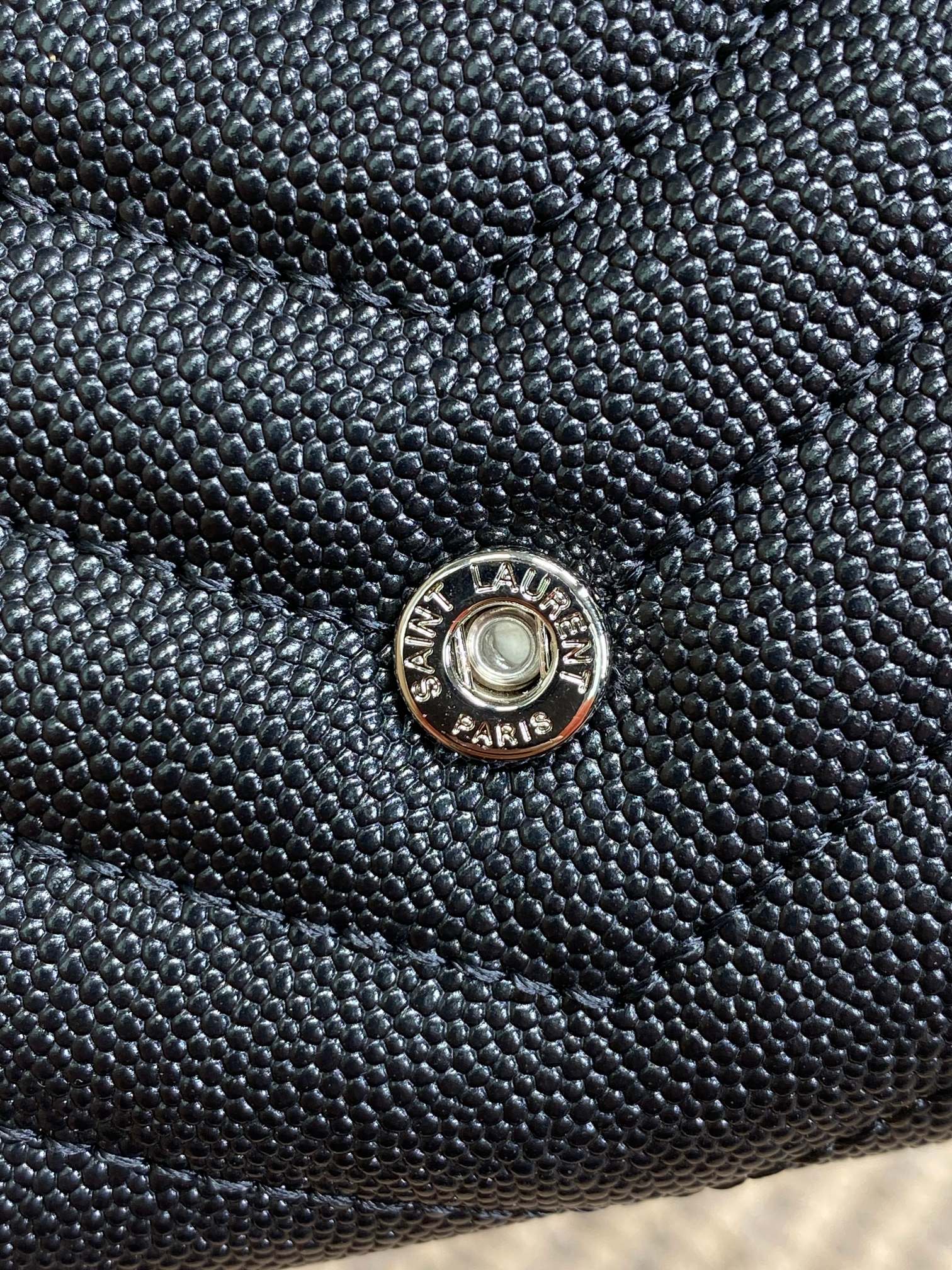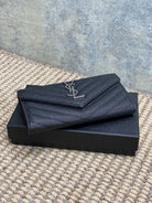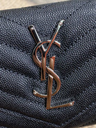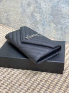 YSL Cassandre Envelope Flap Wallet Black Caviar Cowhide Sliver HW