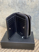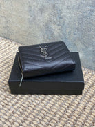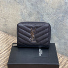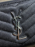 YSL Cassandre Matelassé Compact Zip-Around Wallet Black Caviar Cowhide Sliver HW