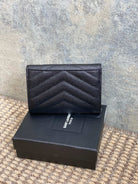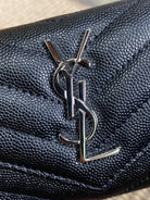 YSL Sliver Logo Monogram Card Flap Wallet 13.5cm Black Caviar Cowhide