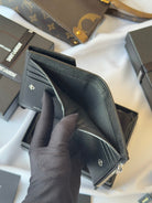 YSL Tri-fold Wallet Black Silver Cowhide 242758