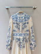 ZIMMERMANN Lucky Plunge Midi Dress Cream/Blue Floral Linen Fabric