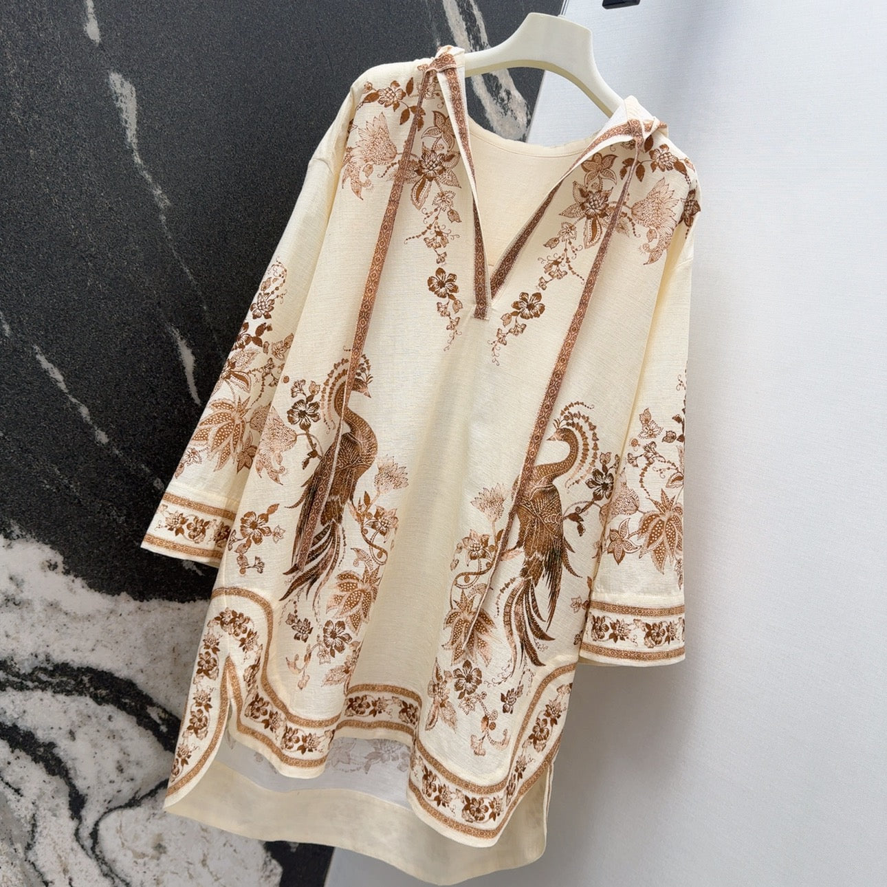 ZIMMERMANN Lucky Plunge Midi Dress Cream/Blue Floral Linen Fabric