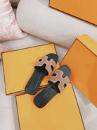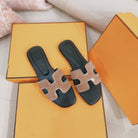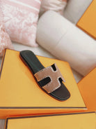 0ran Sandal Calfskin Rhinestone Brown