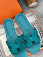 - Material: Sandal in suede goatskin with iconic "H" cut-out.