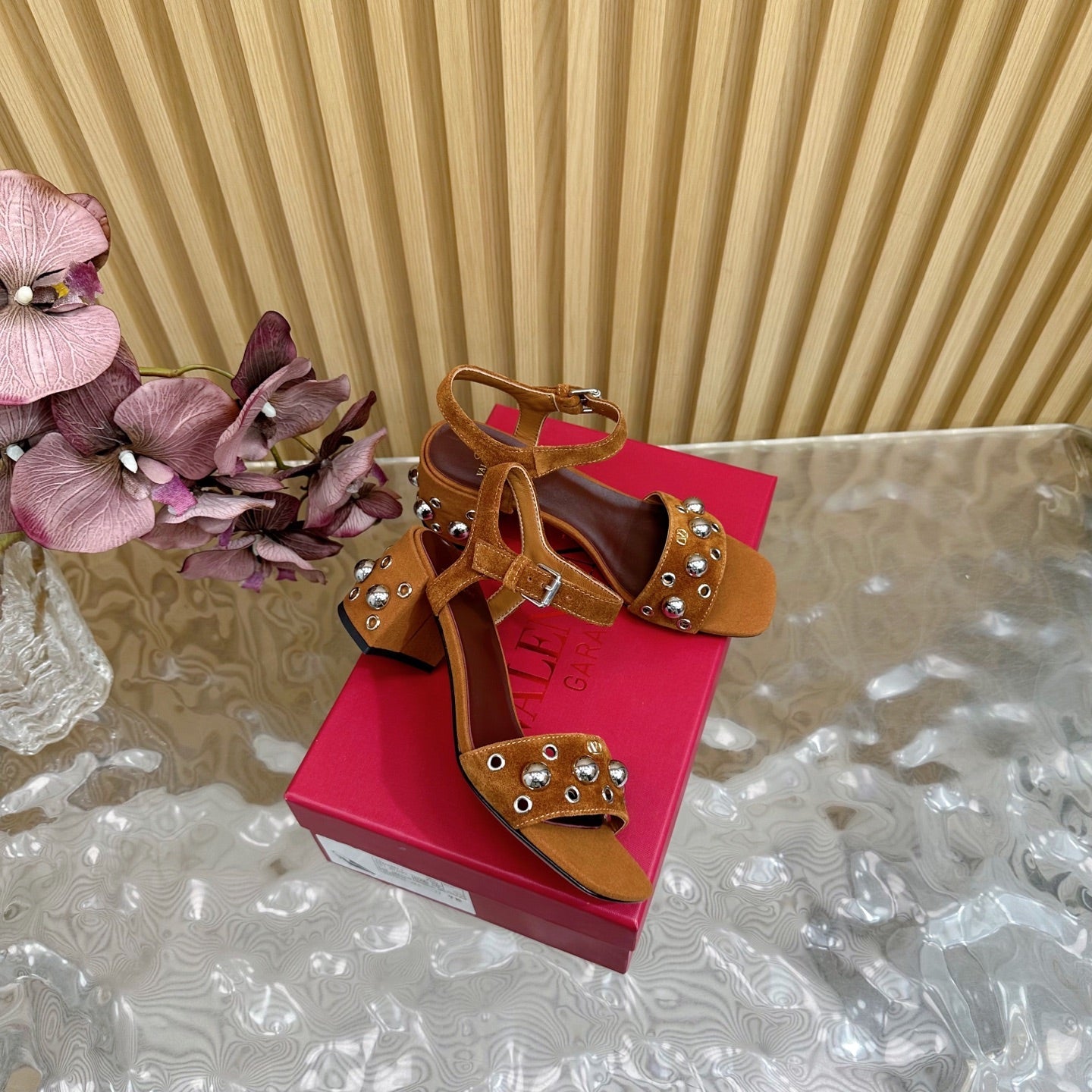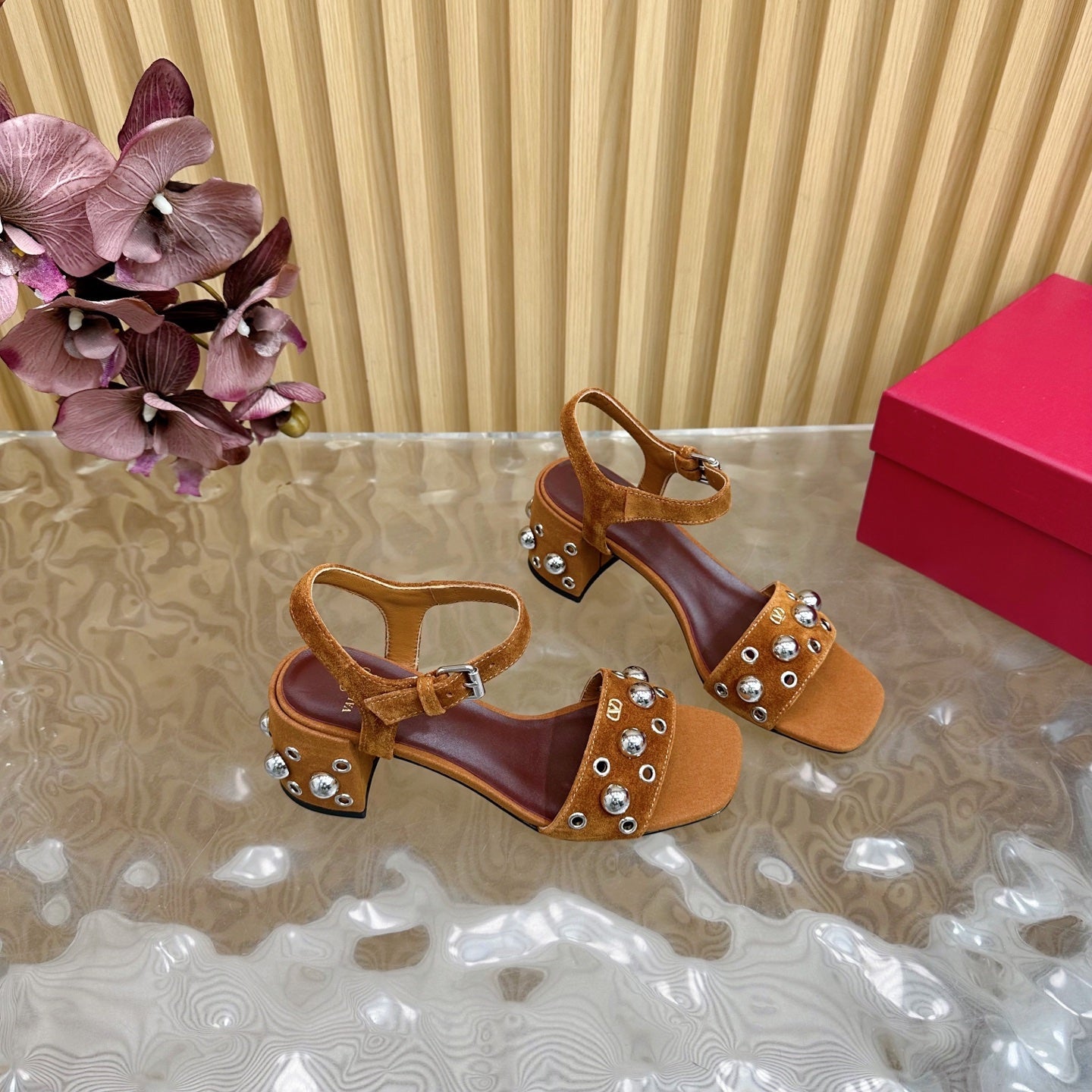 2 Rockstud Slingback 90mm Matte Rose Cannelle