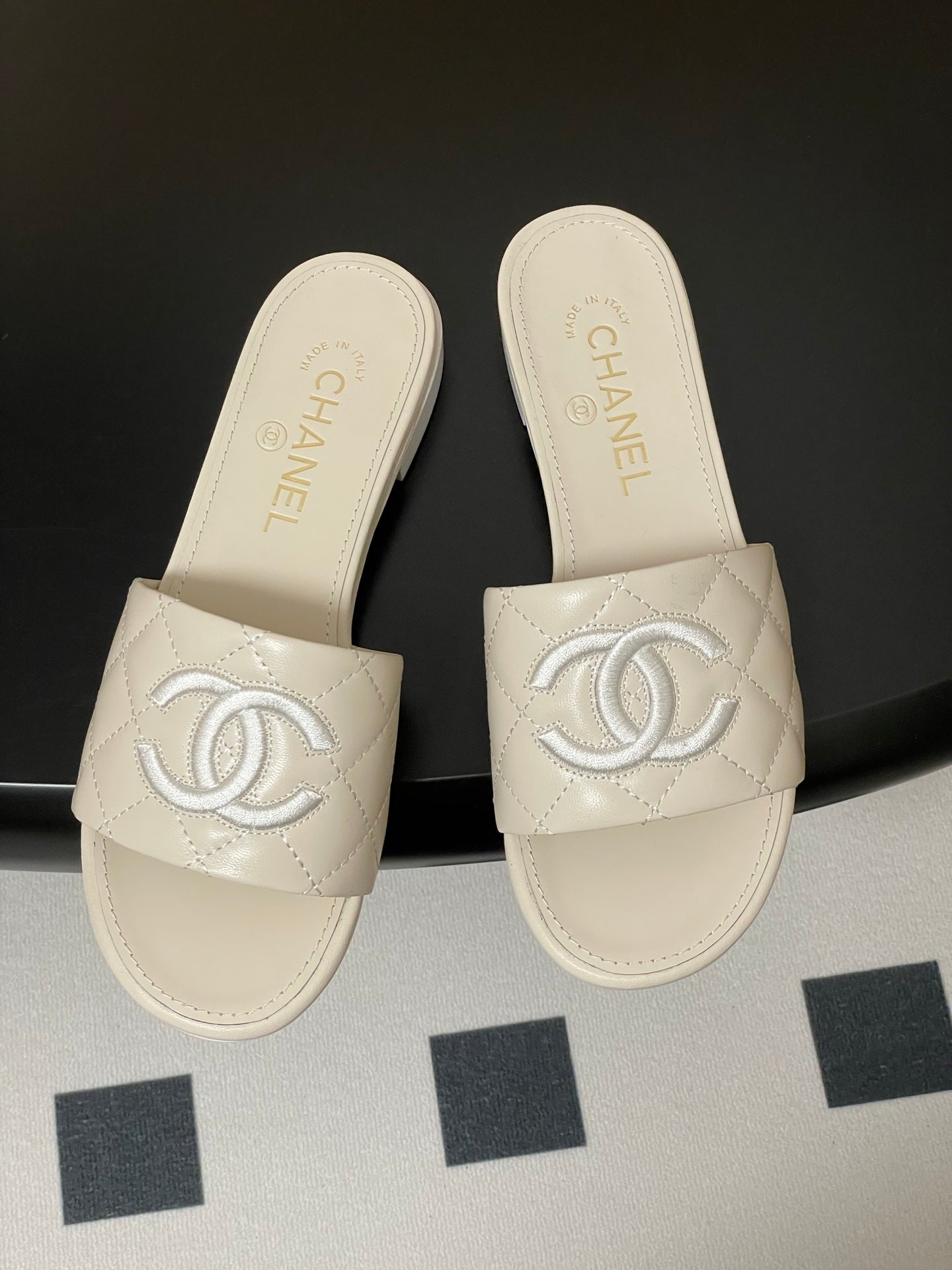 25S Embroidery Double C Mule 15mm White Lambskin 247583