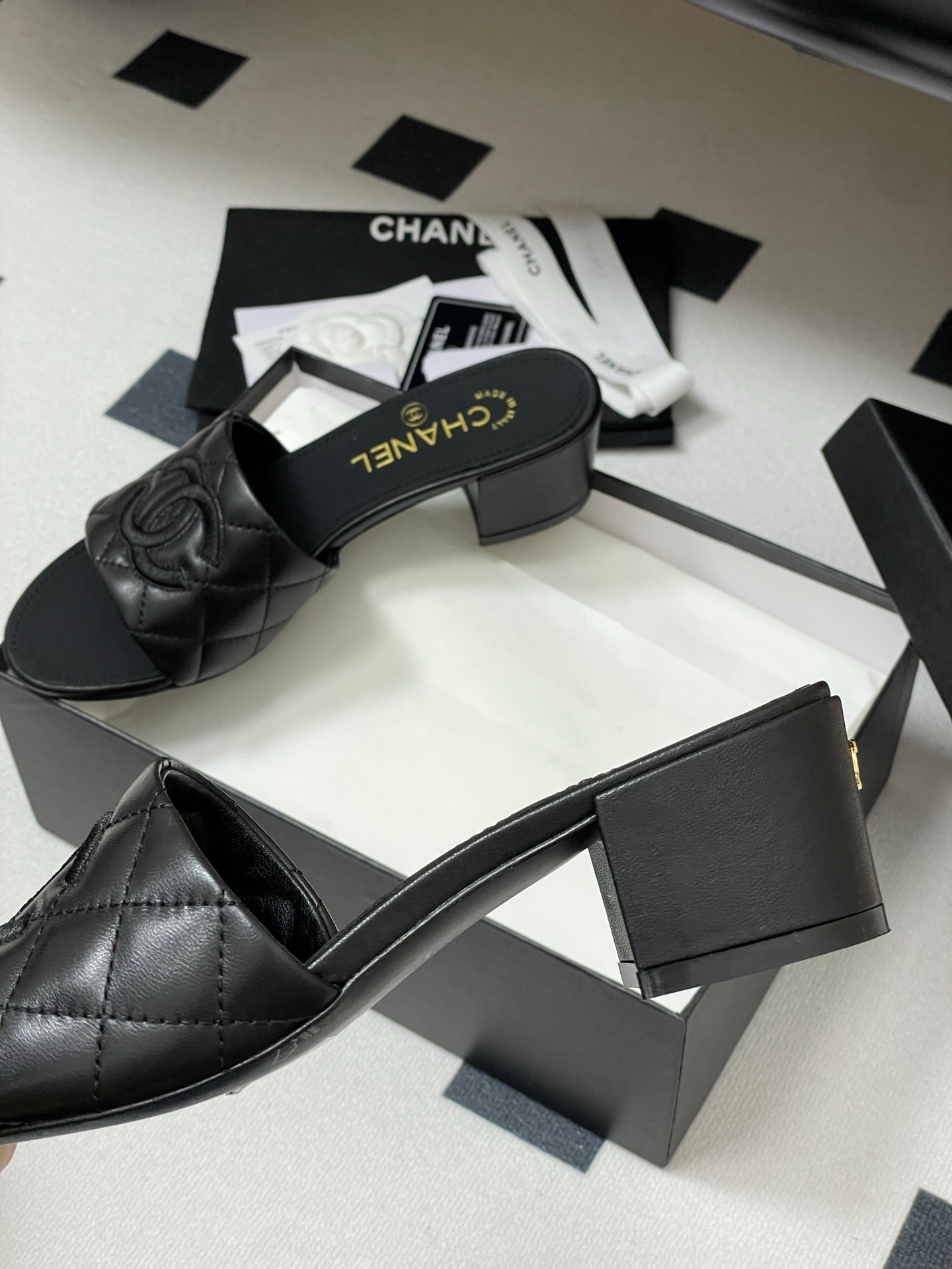 25S Embroidery Double C Mule 50mm Black Lambskin 247577