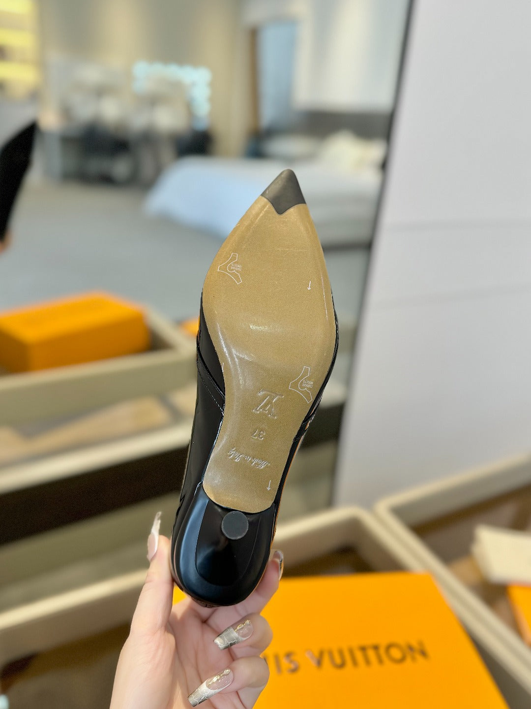 - Material: Patent Calfskin