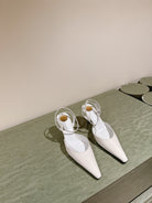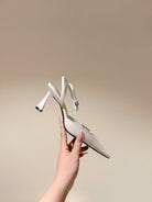 AIMÉE HIGH 8 CM SLINGBACK PUMPS IN WHITE PATENT CALFSKIN