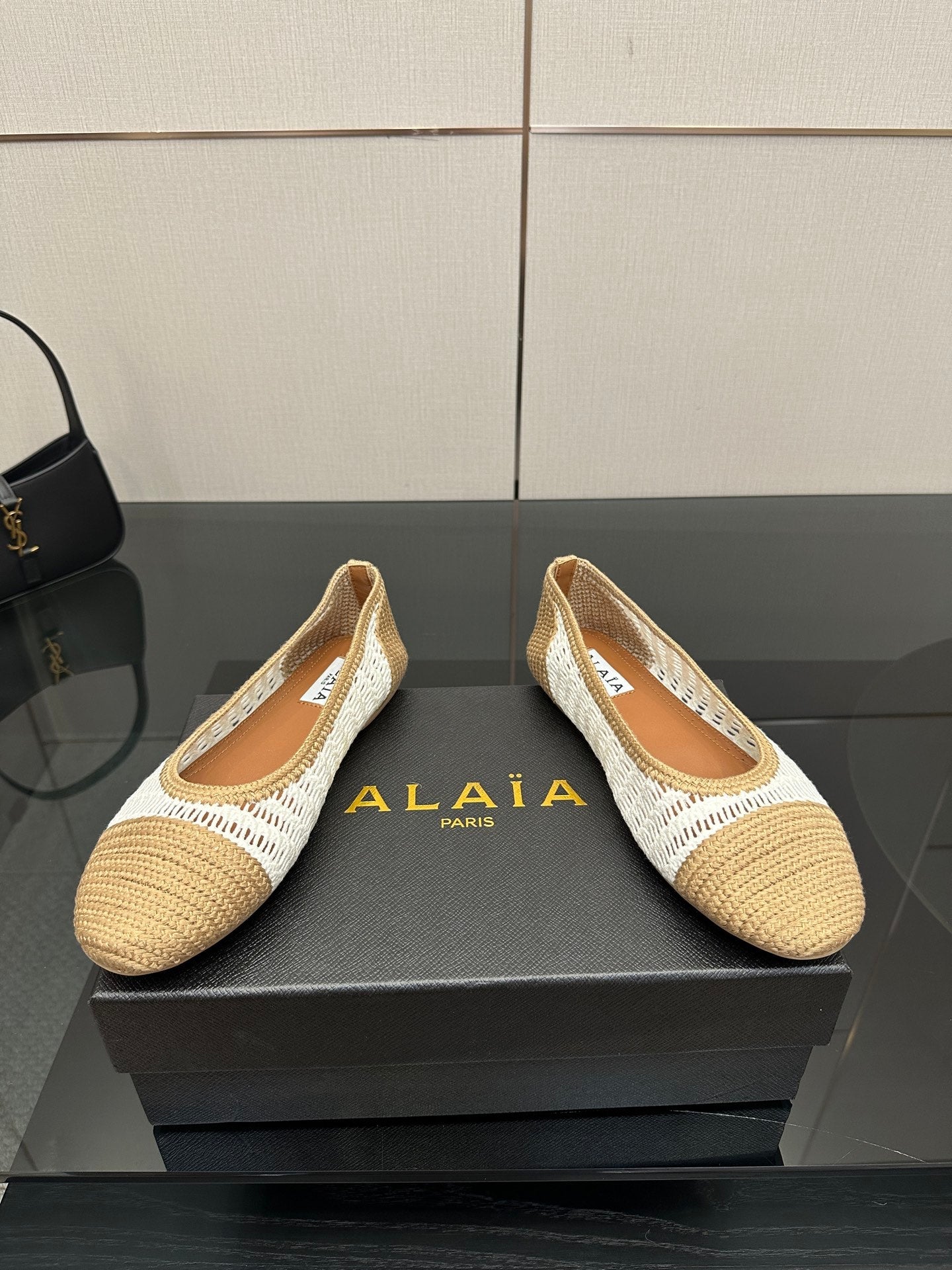 Alaia 2025 Ballet Flat Beige White Raffia 433755