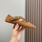 Alaia 2025 Criss Cross With Stud Ballet Flats Brown Beige Suede 293207