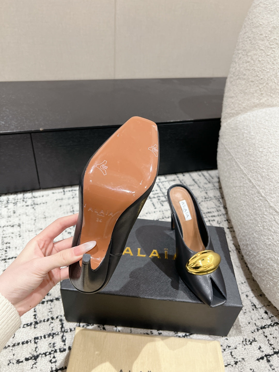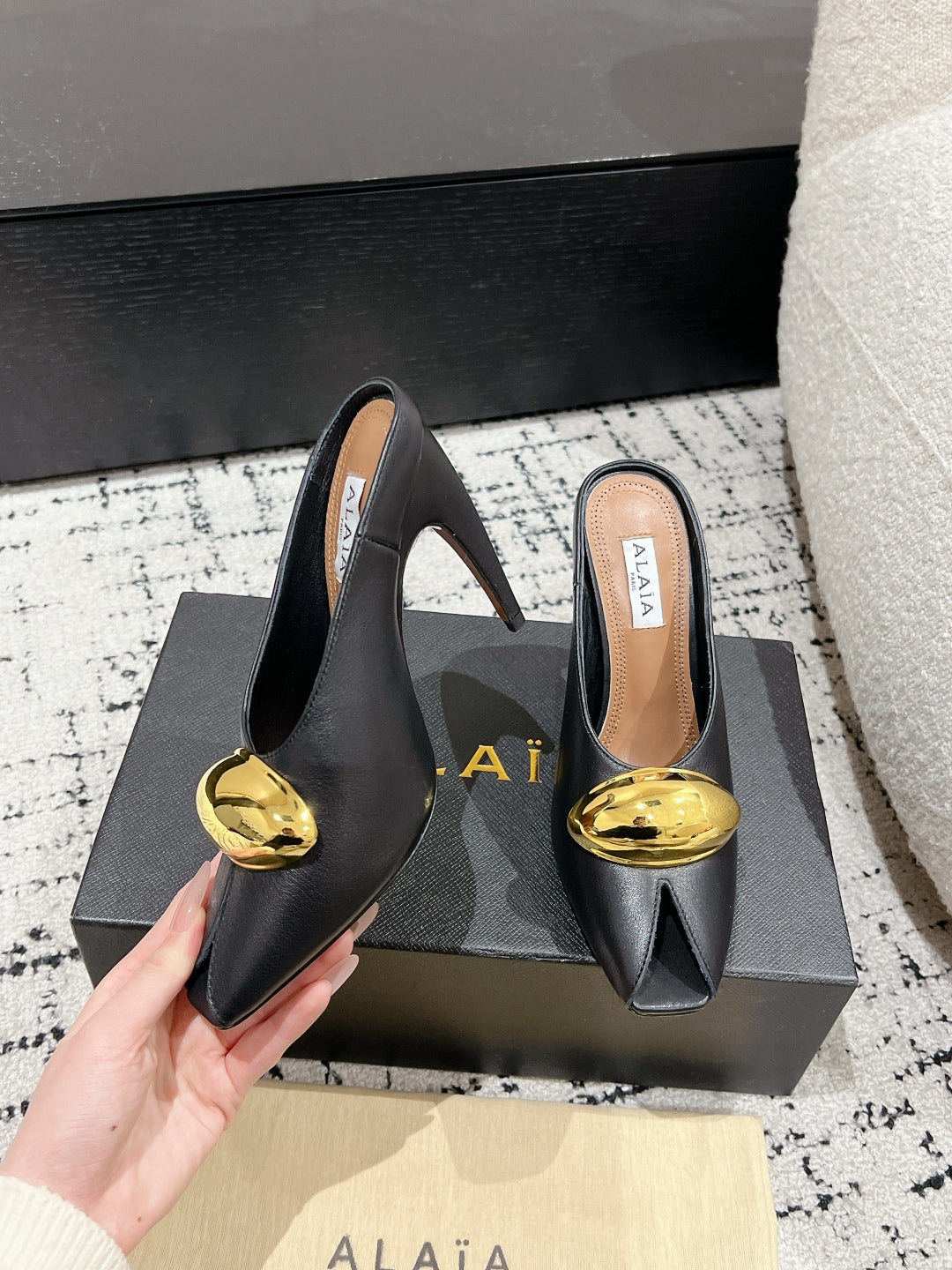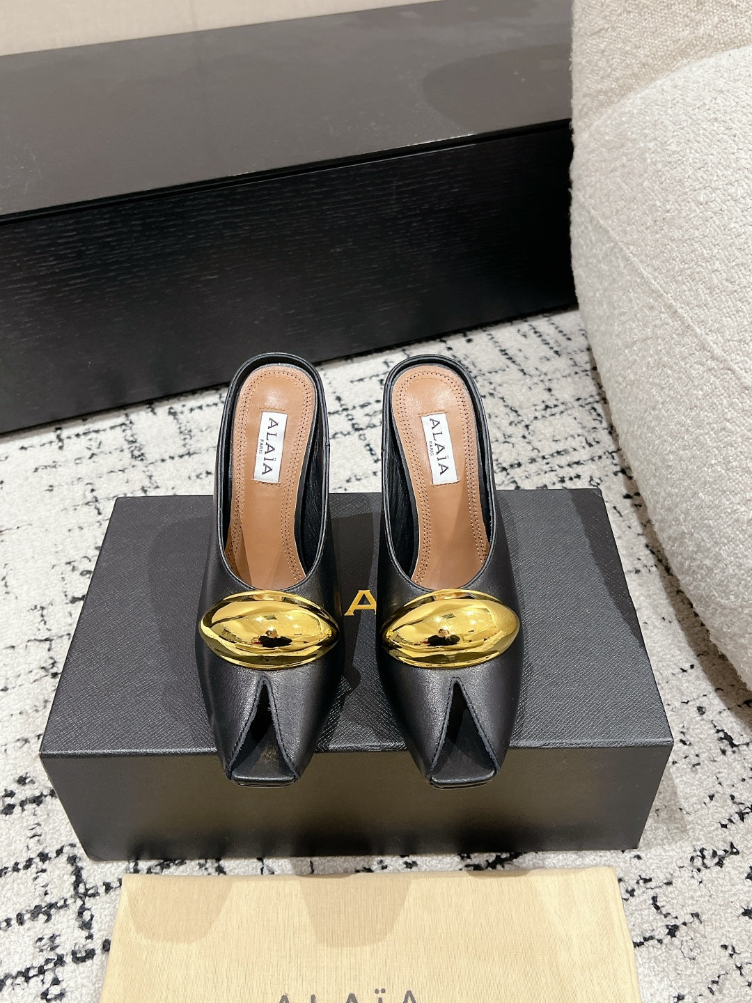 Alaia 25 Azzedine High Heels Mules With Gold Hardware Black Calfskin 293185