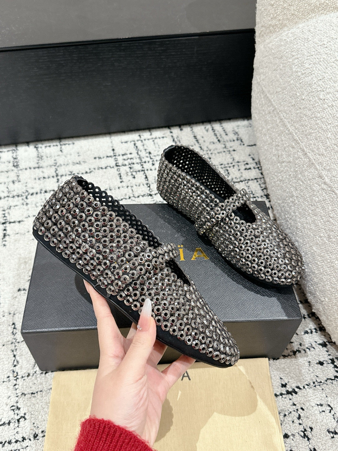 Alaia 25 Embellished Mary Jane Flats Silver Suede 293180