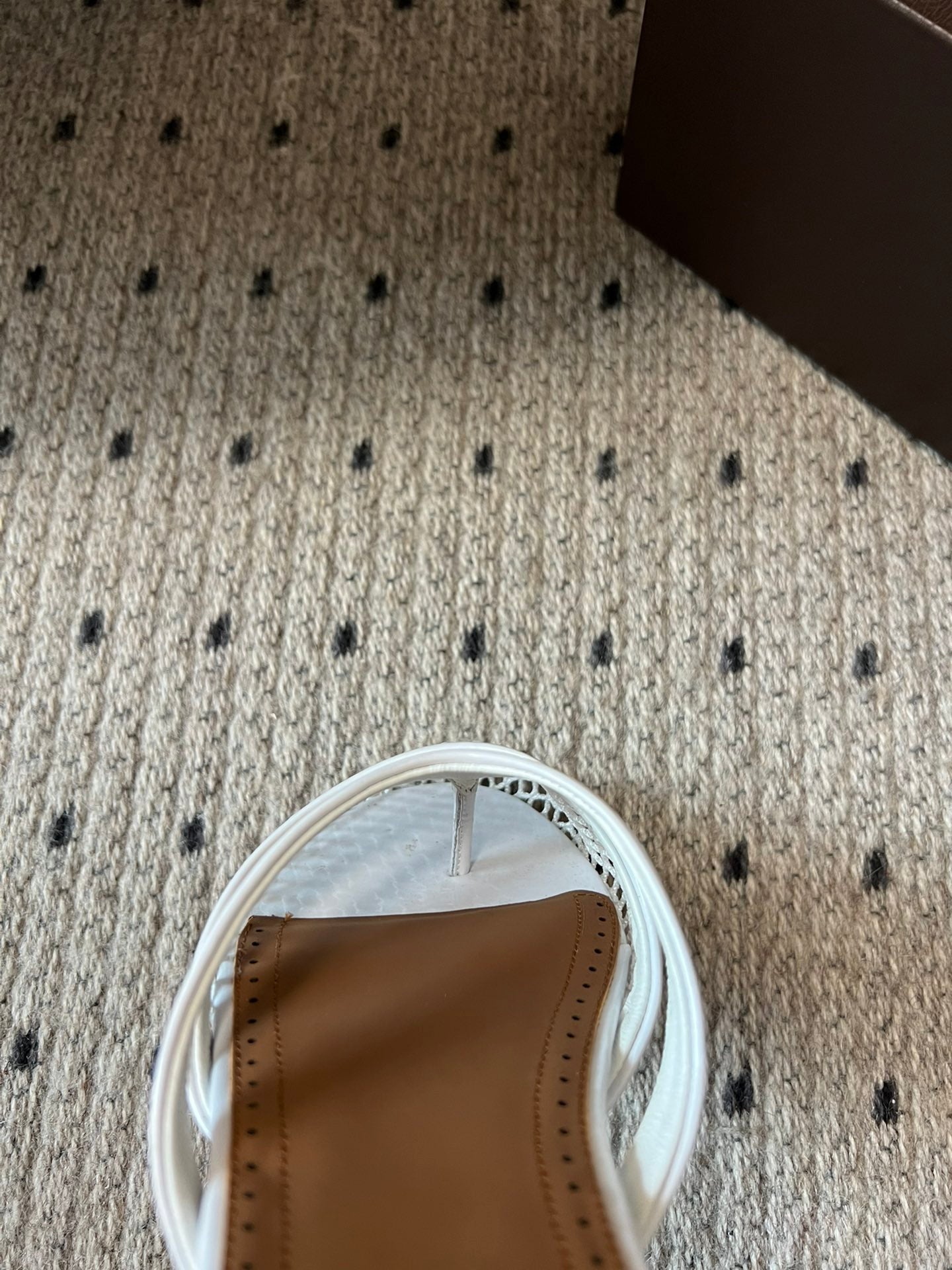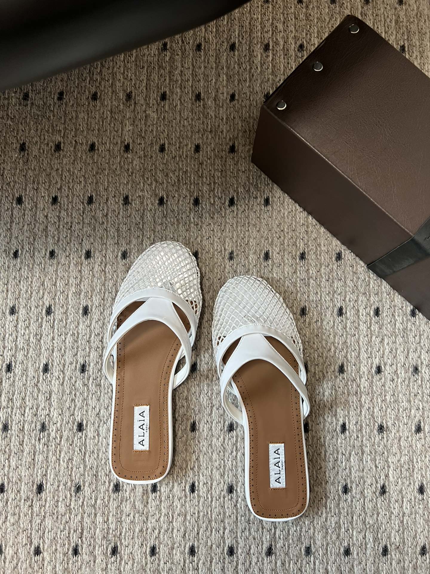Alaia 25 Infradito Fishnet Flat Mules White Lampskin 303706