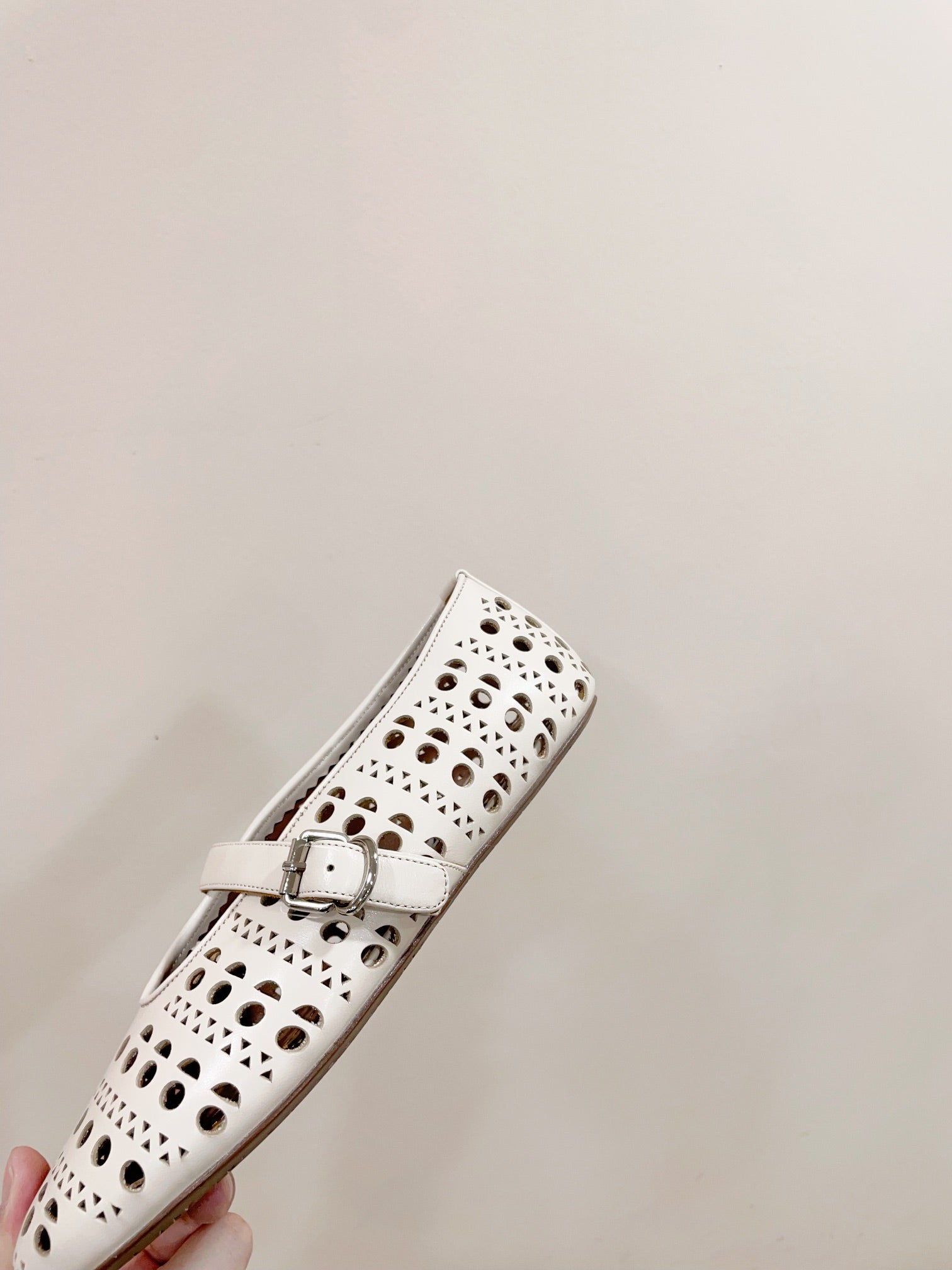 ALAIA HOLLOW BALLET FLAT IN BEIGE LAMBSKIN