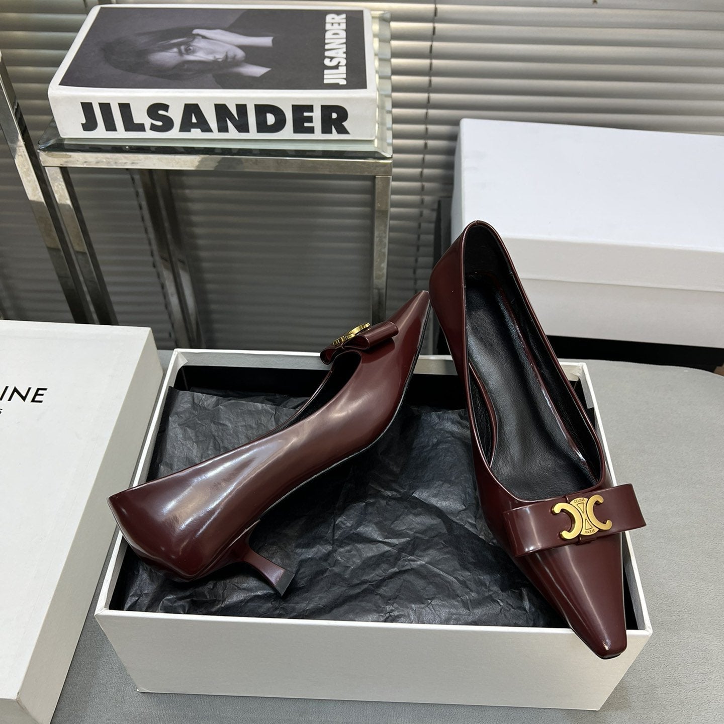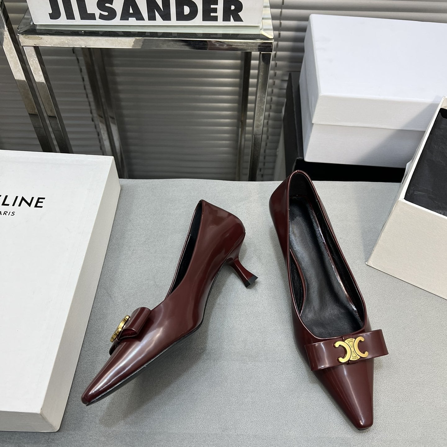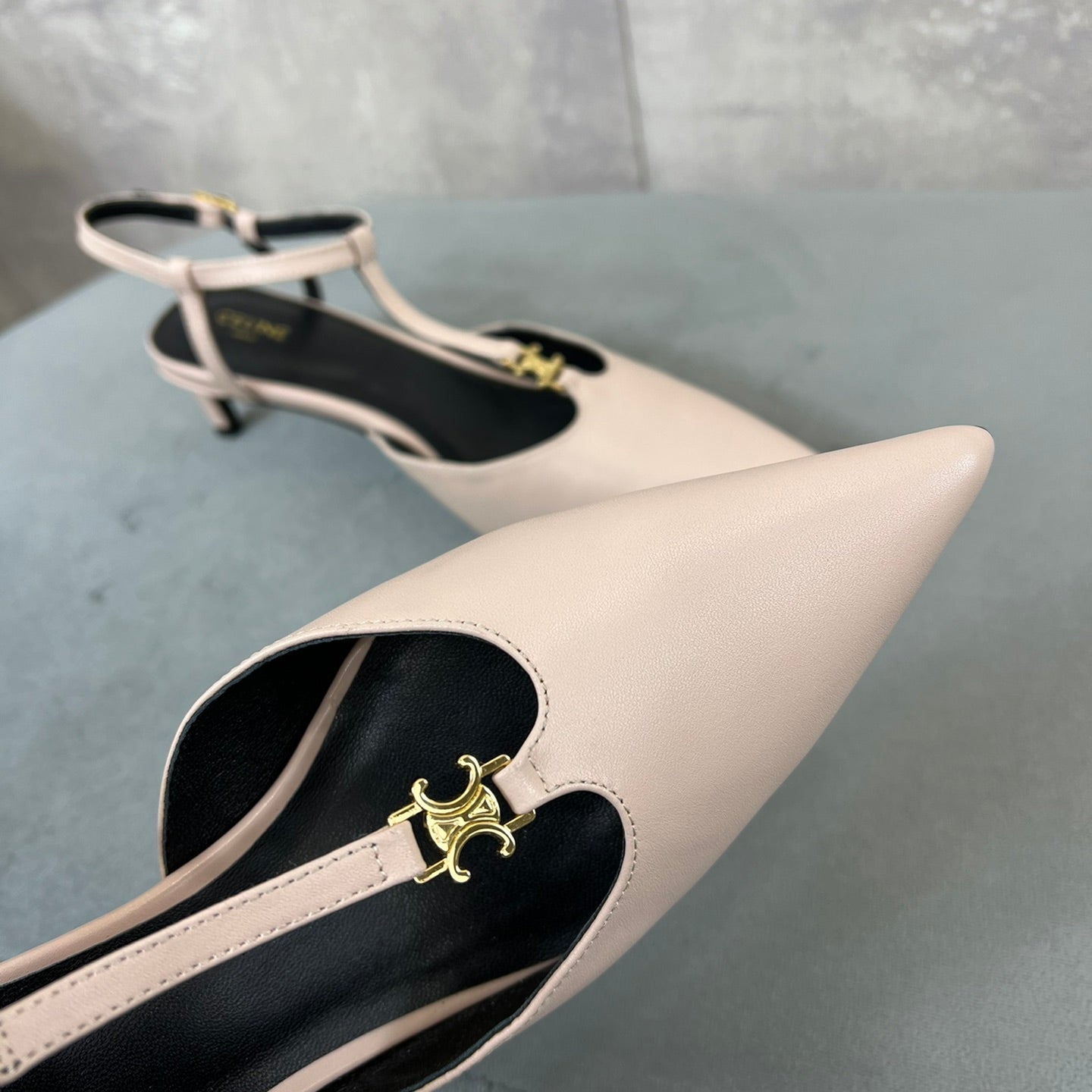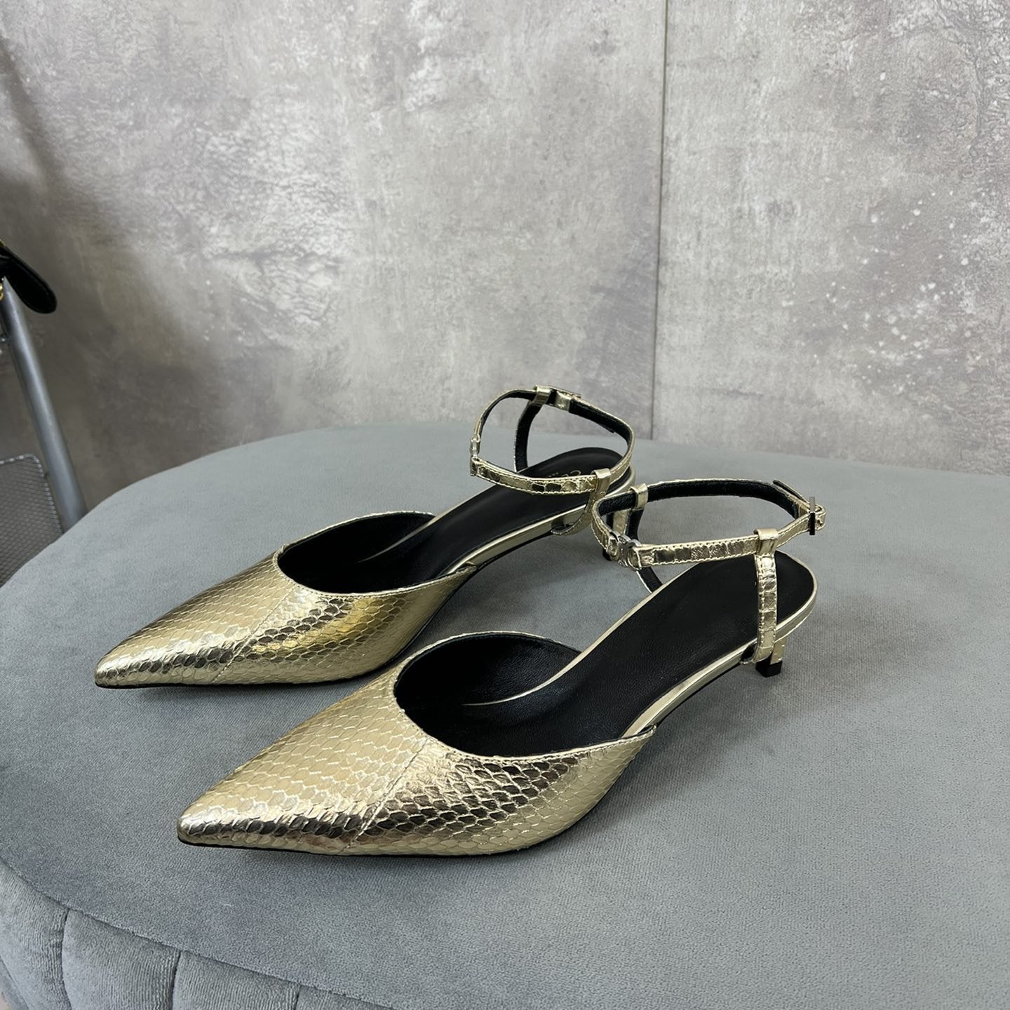 • Upper: Custom imported calf with pearl edge, satin