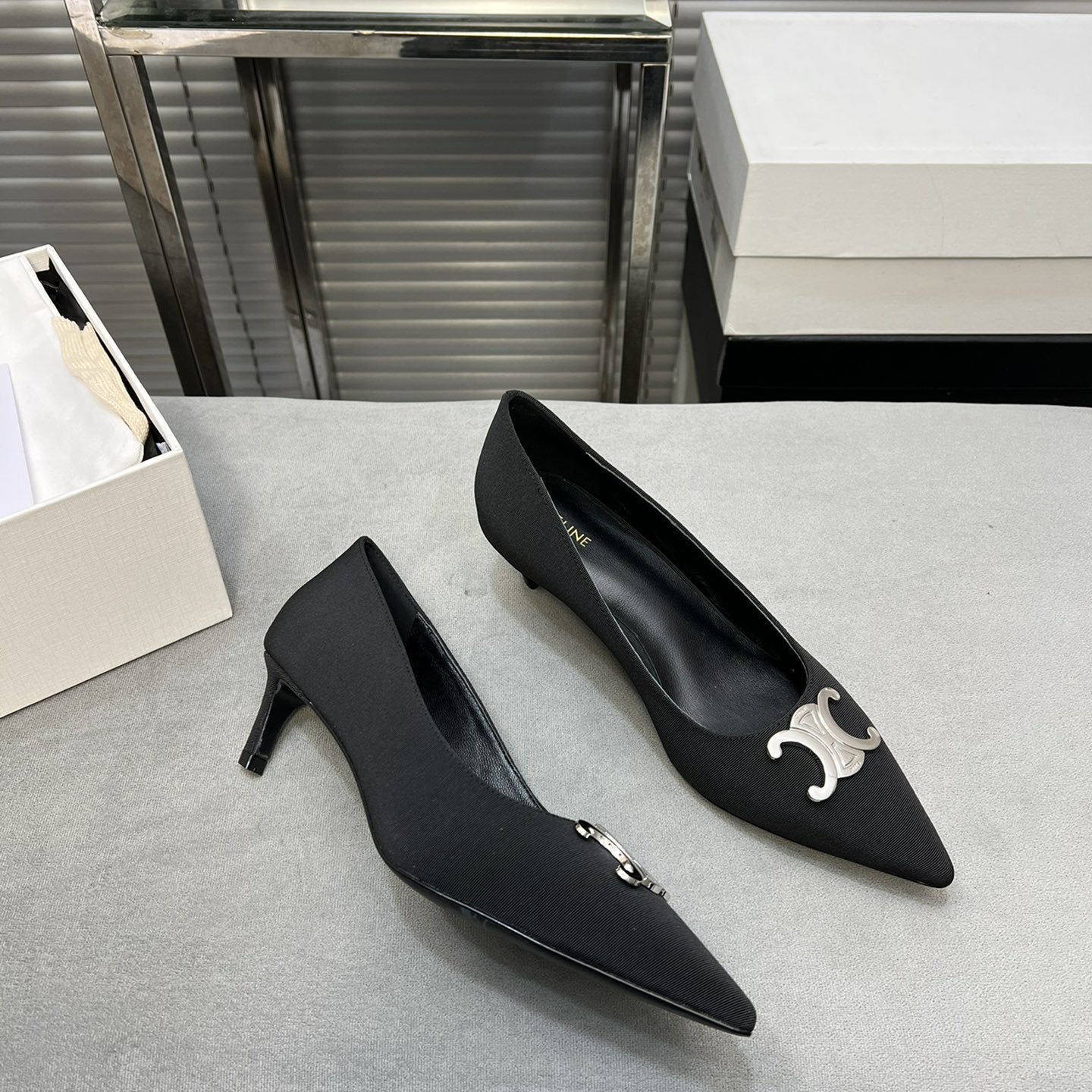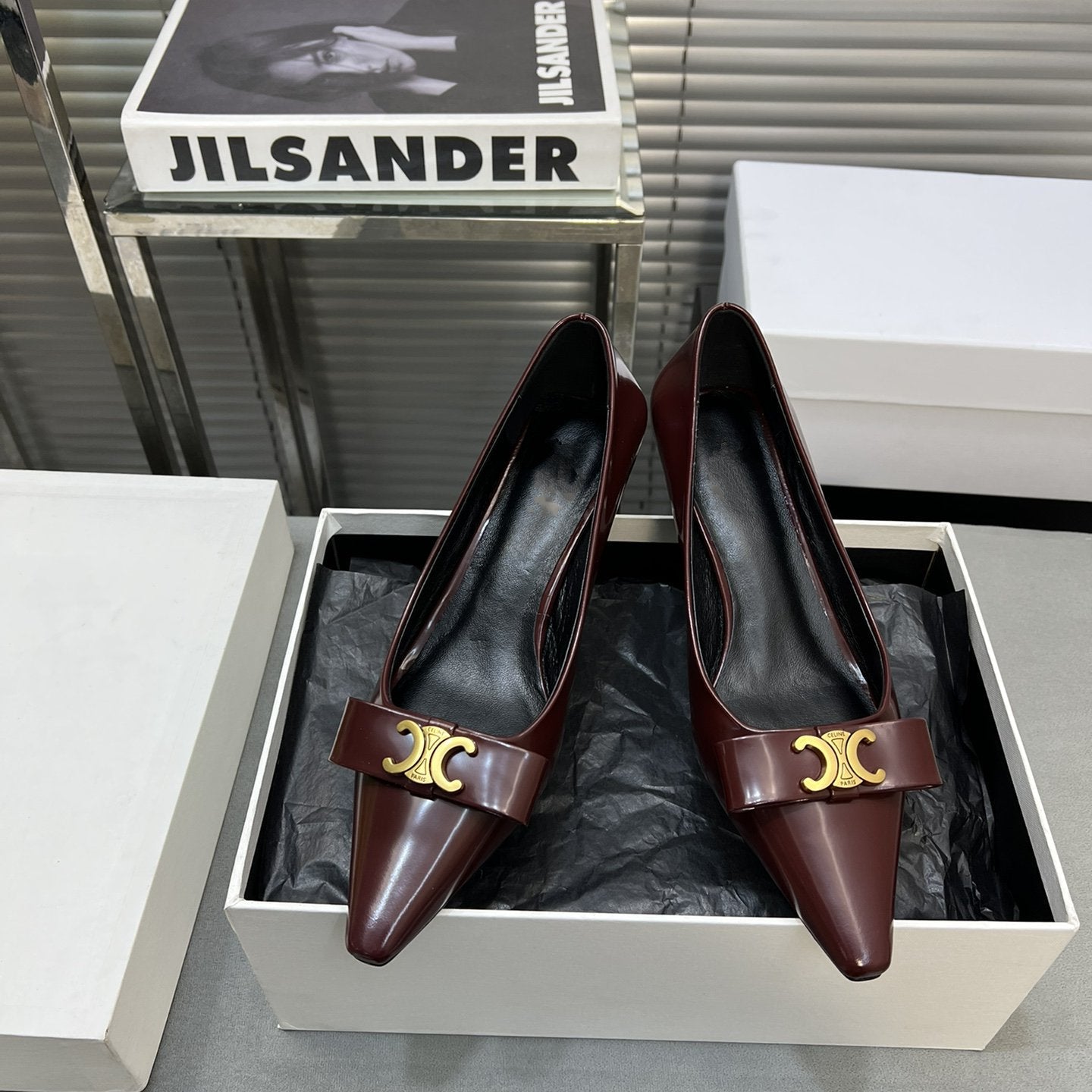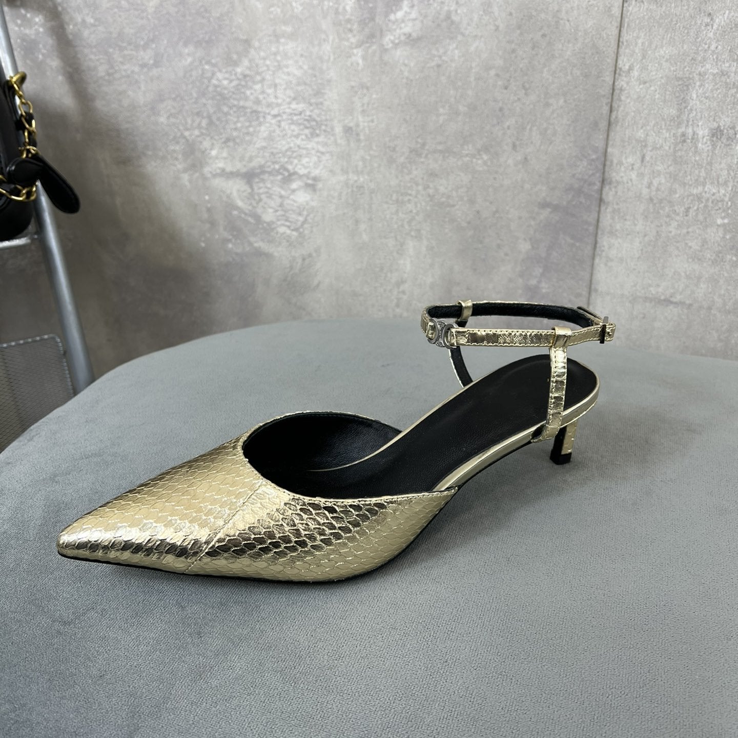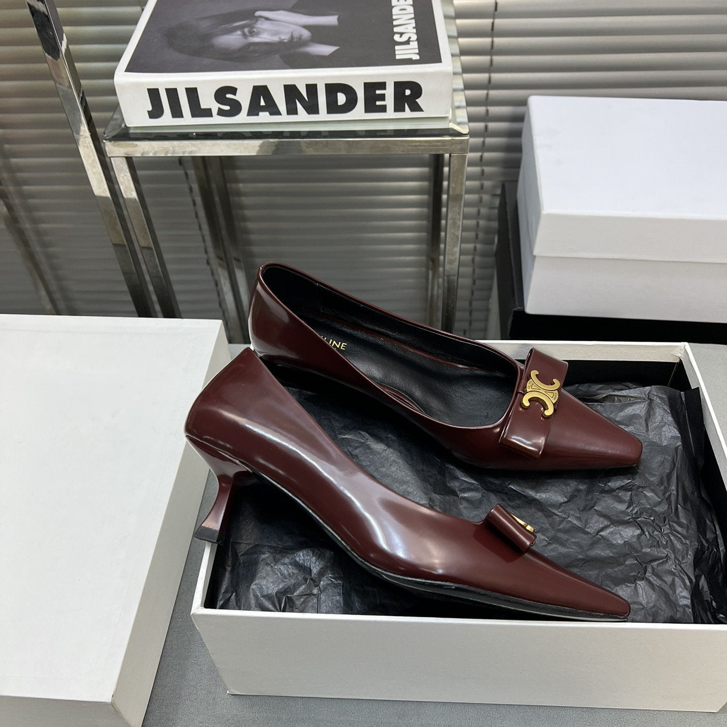 • Upper: Custom imported calf with pearl edge, satin
