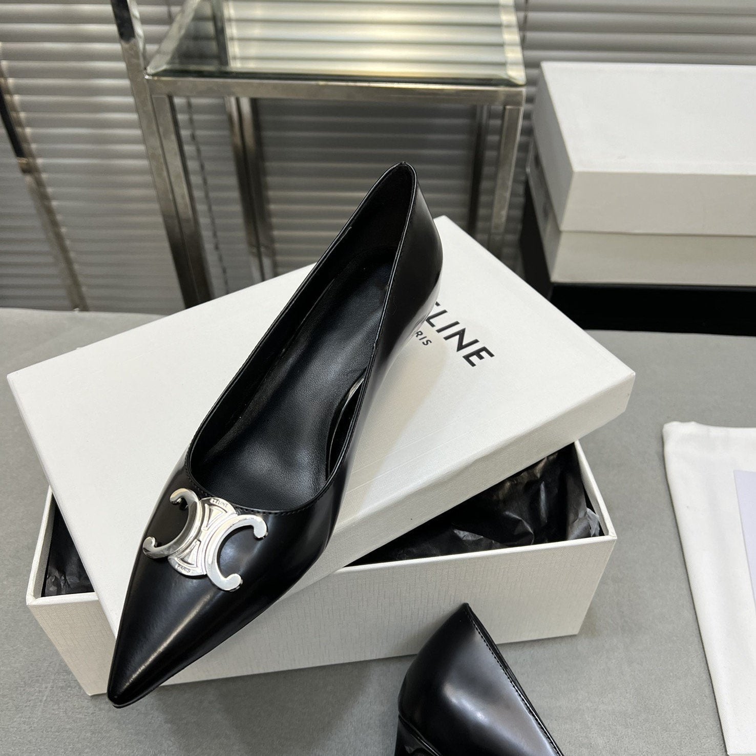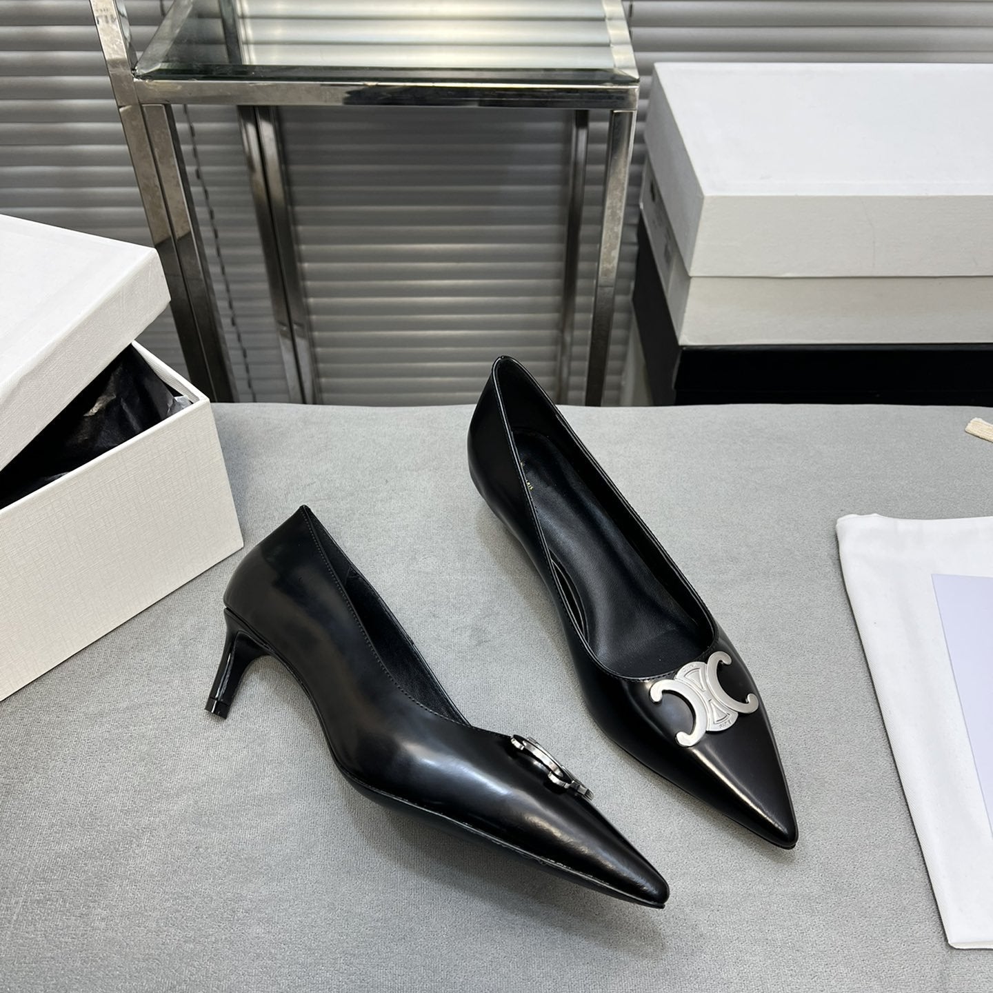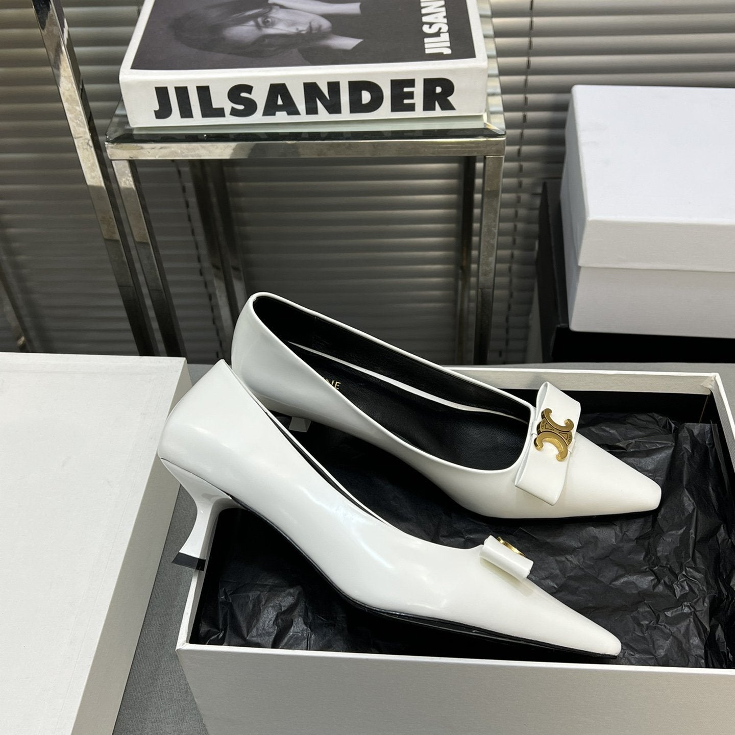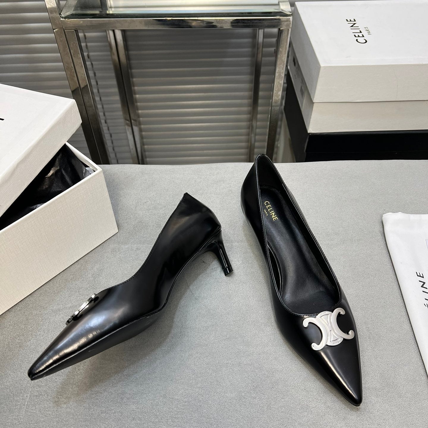 • Upper: Custom imported calf with pearl edge, satin