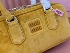 ARCADIE BAG 22 IN MUSTARD YELLOW SUEDE GOLD HARDWARE