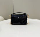 BAGUETTE MINI 19 IN BLACK SEQUINS GOLD HARDWARE