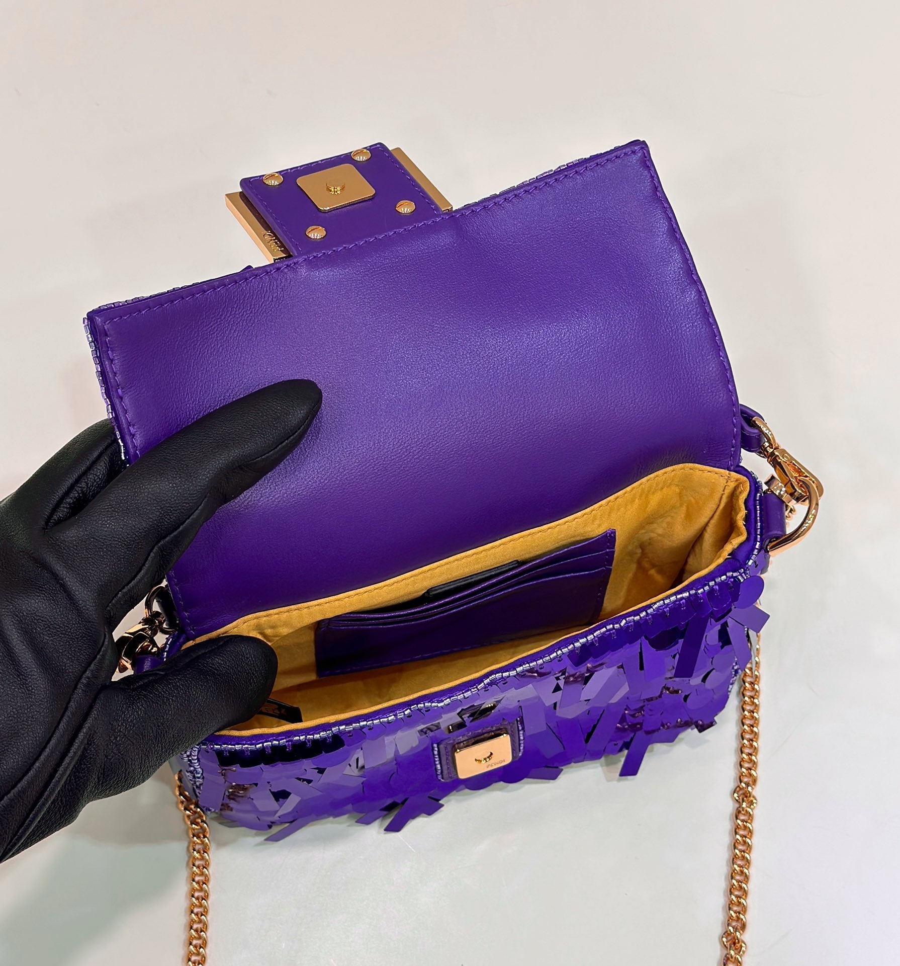 BAGUETTE MINI 19 IN GRAPE JELLY SEQUINS GOLD HARDWARE