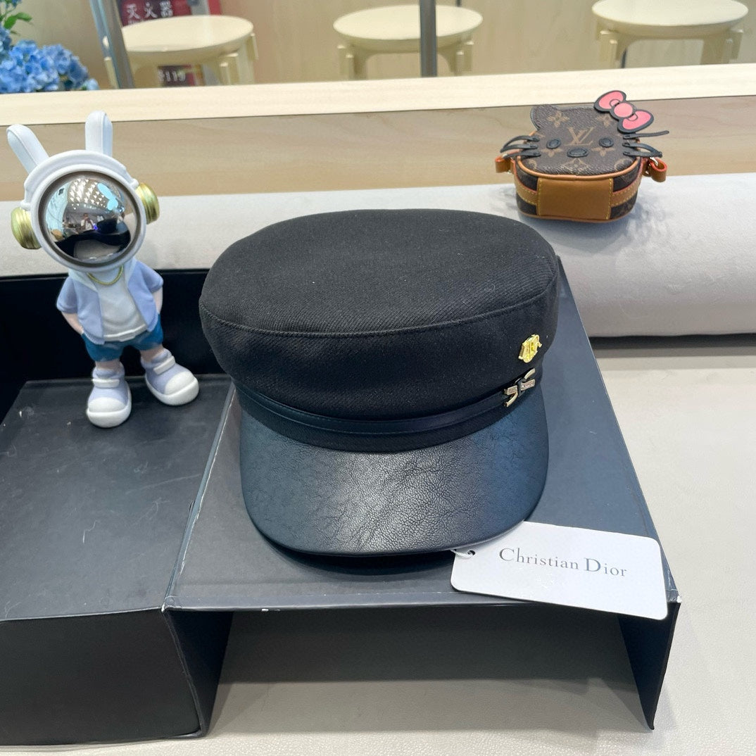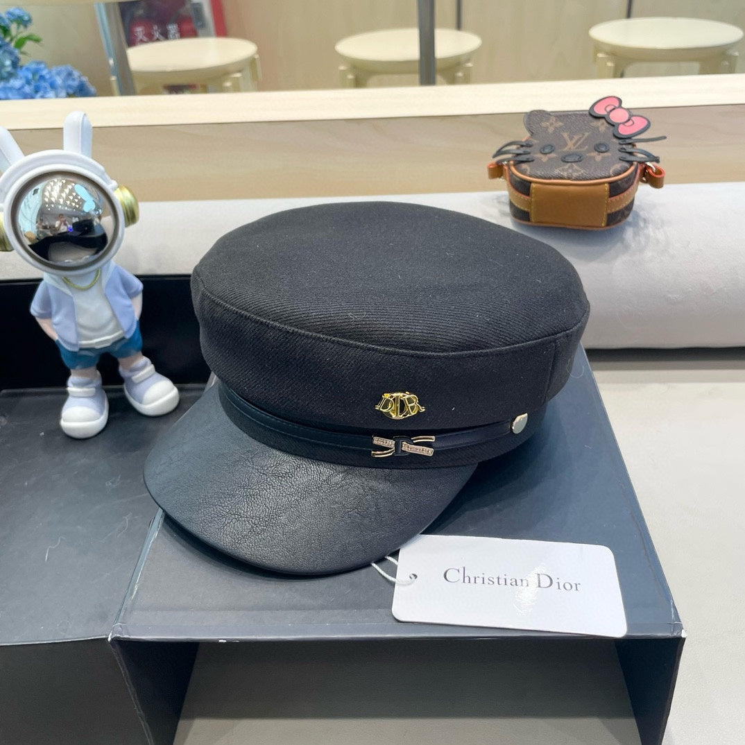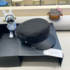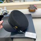 BAKER BOY HAT IN BLACK COTTON AND LEATHER 428246