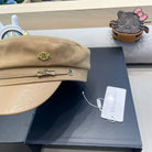 BAKER BOY HAT IN BOUTIQUE BEIGE COTTON AND LEATHER 428244
