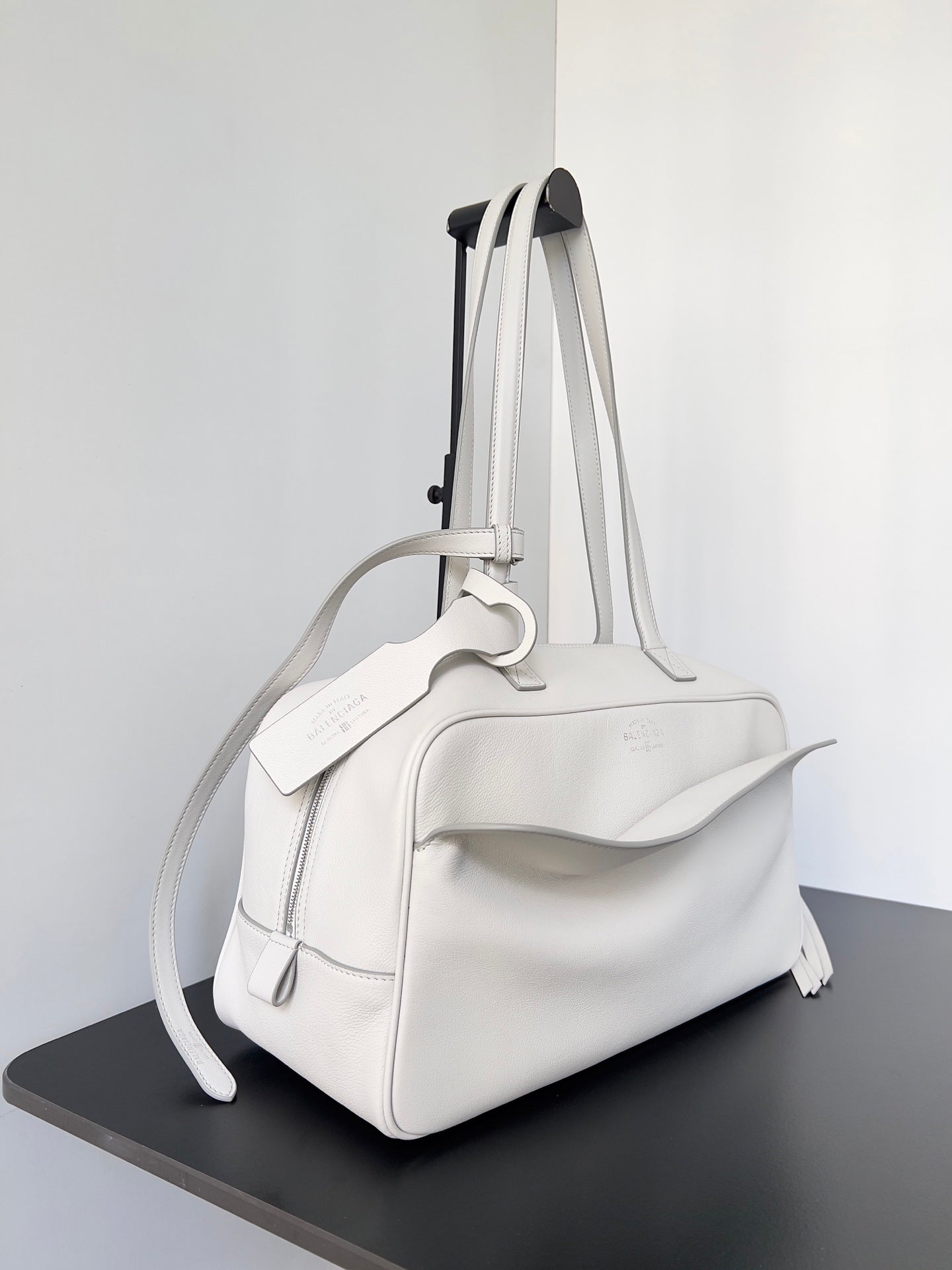 Balenciaga Carrie Bowling Ball Bag White Lambskin