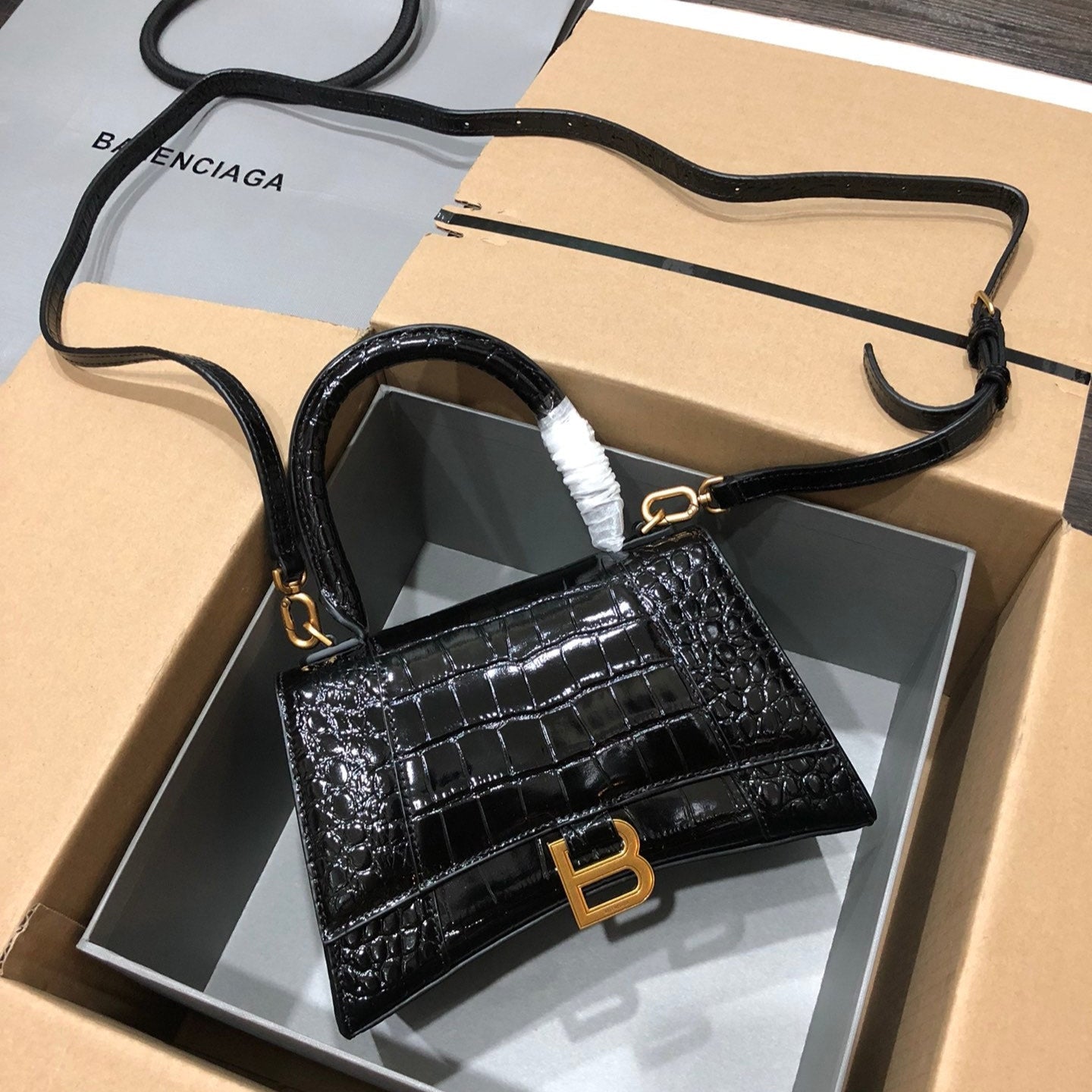 Balenciaga Hourglass bag black crocodile skin 536051