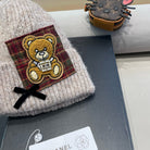 BEANIE HAT IN CAMEL BEIGE WOOL WITH BOW 421255