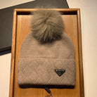 BEANIE HAT IN CAMEL BROWN WOOL AND RABBIT FUR 361437