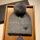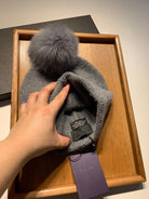 BEANIE HAT IN DOVE GRAY WOOL AND RABBIT FUR 361434