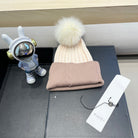 BEANIE HAT IN LIGHT BROWN MIX WHITE WOOL AND FOX FUR 422502