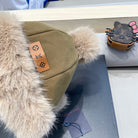 BEANIE HAT IN SAND BEIGE FLEECE AND WOOL 424307