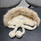 • Women's Hat with plush material and pom-pom design, featuring cute bunny ears, ideal for winter.
