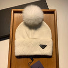 BEANIE HAT IN WHITE WOOL AND RABBIT FUR 361435