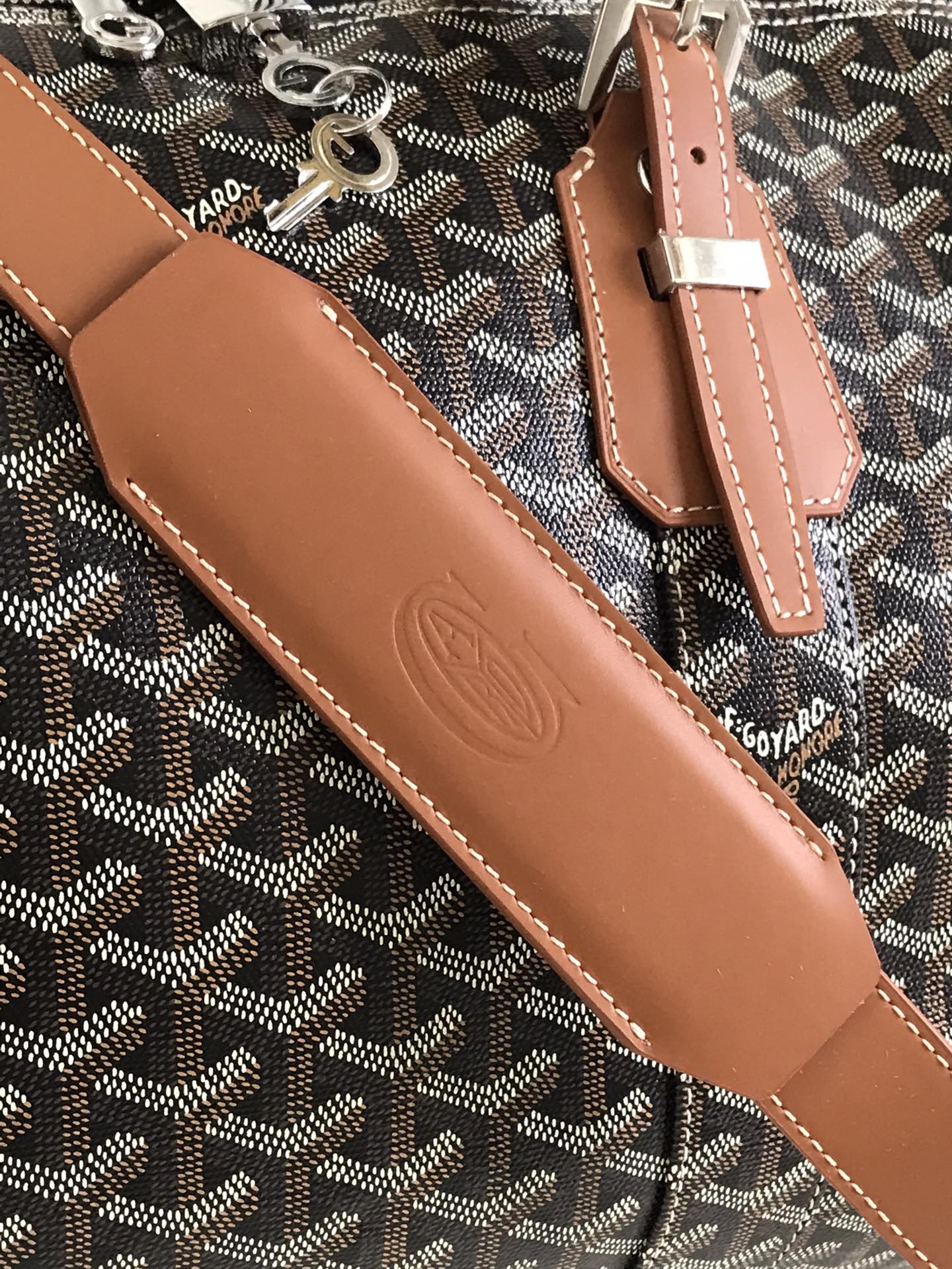 BOSTON 50 BAG IN BLACK GOYARDINE CANVAS AND TAN CALFSKIN TRIM