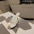 BOW-EMBELLISHED HIGH MULES IN WHITE SHEEPSKIN