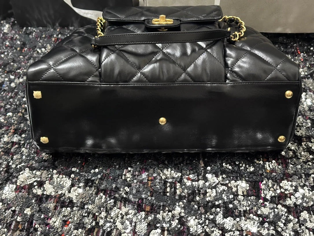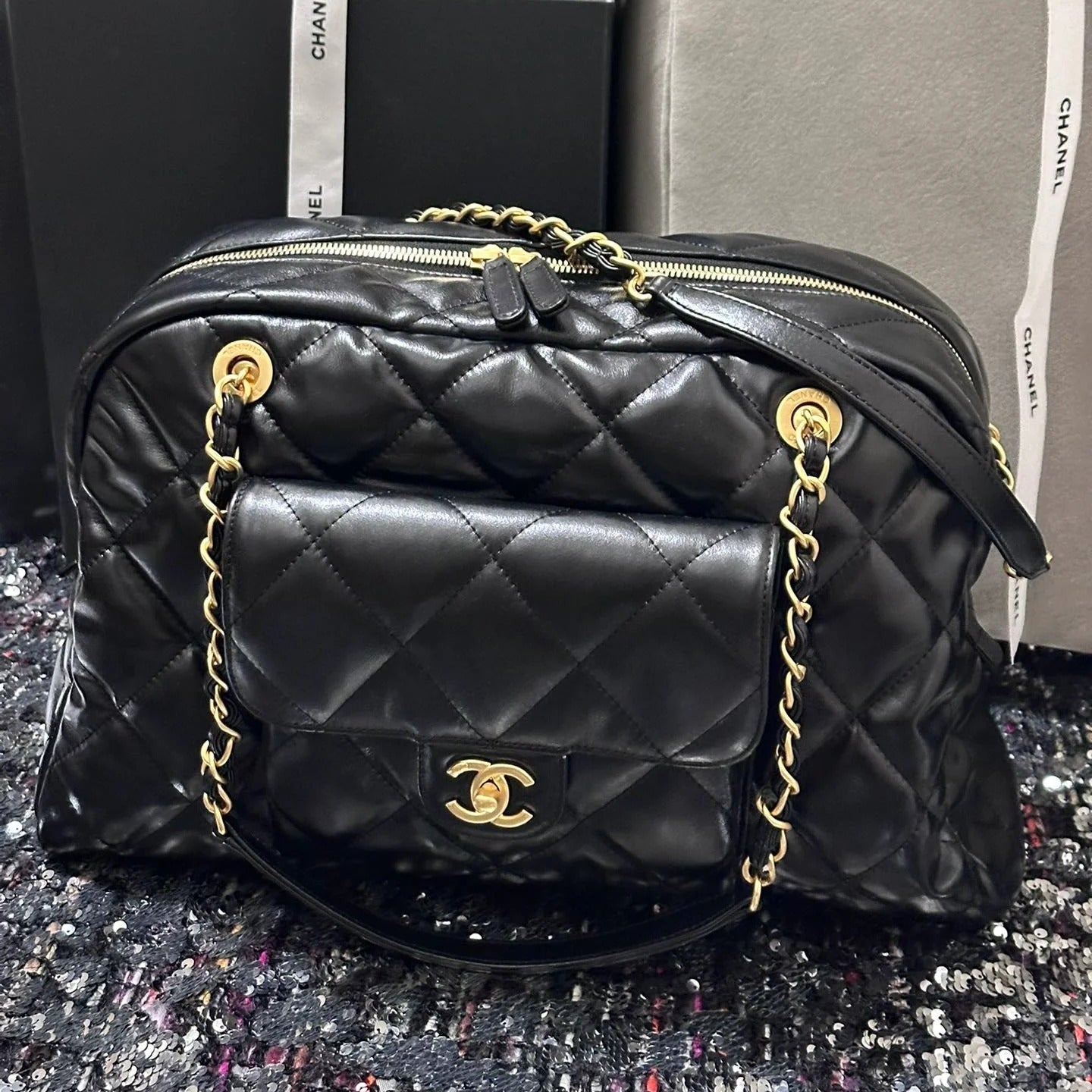 BOWLING BAG 44 IN BLACK SOFT LAMBSKIN GOLD HARDWARE
