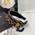 BRAIDED HEADBAND IN BLACK AND TORTILLA BROWN TRIM FABRIC 381461
